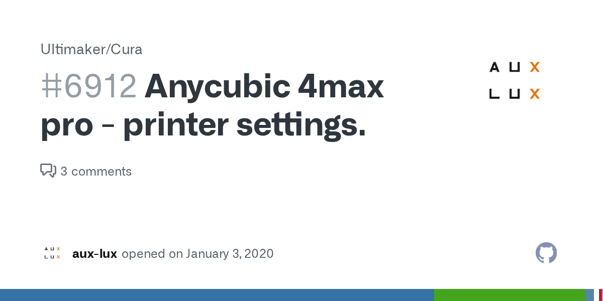 I added a couple of lines to my startup script to wipe the nozzle... I also added a couple of lines to the end script to lower the print bed when done. I was seeing inconsistent extrusion with the owl print that came on the sd card and i tried a petg cura profile and your pla profile. How do you load that profile? Anycubic 4max pro 2.0 cura settings files... Hi, tl;dr you'll find a configuration file here: